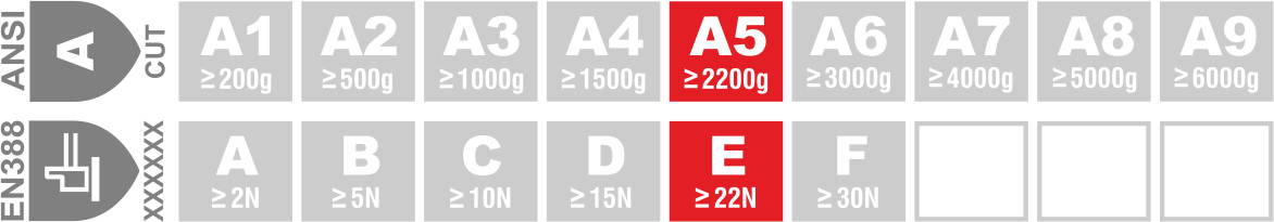 - Cut Resistant Level E / A5 Rating