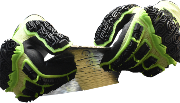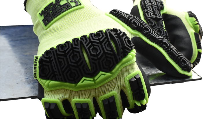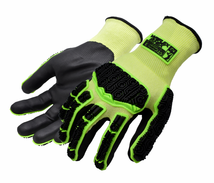Cut ‘N’ Impact resistant, touchscreen compatible durable glove with a Microfoam (pitted) palm coating that offers performance grip in wet, oily and slippery conditions. Exceptional dorsal impact protection to fingers & knuckles, yet flexible & dextrous due to patented ‘Integrated Expansion Slots’ & ‘Flex Points’