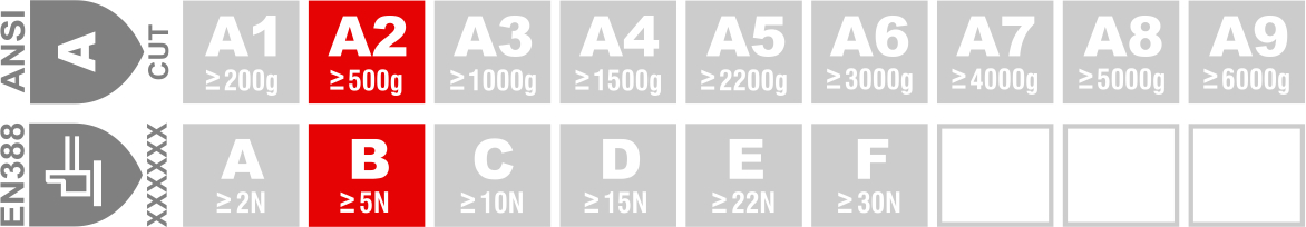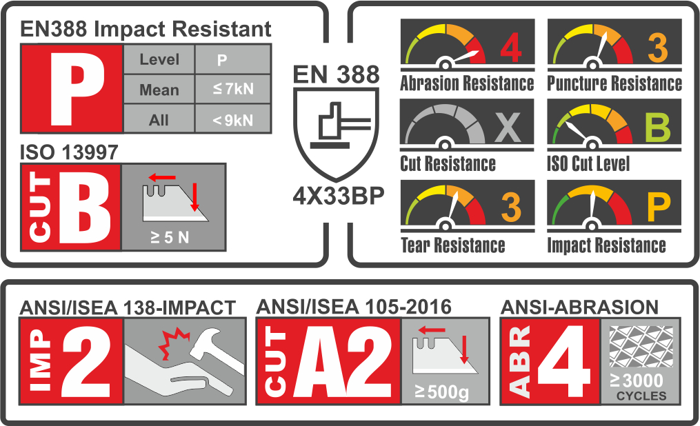 - ANSI Level 2 Impact – EN388 ‘P’