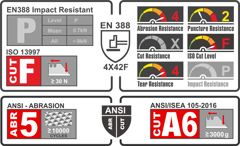 Tough, Compact, Cut & Shock protection. An extreme cut and abrasion resistant palm c/w reinforced / padded shock reducing palm zones offers increased durability and assured grip in wet & light oily conditions. Reinforced forefinger and thumb zones add increased rough grip traction and longevity.