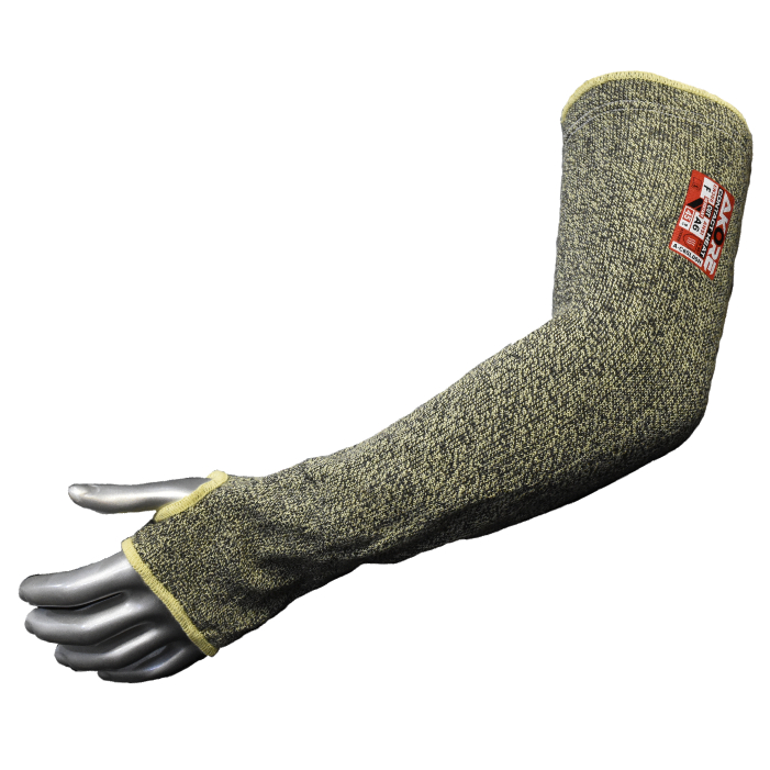 Contact Heat & Cut Resistant, seamless 45cm sleeve engineered from Aramid. Features an elasticated upper arm with inner silicone dotted ‘stay-up’ lining and short palm guard with thumb slot to keep the sleeve securely in position.