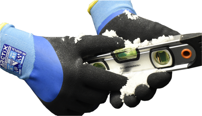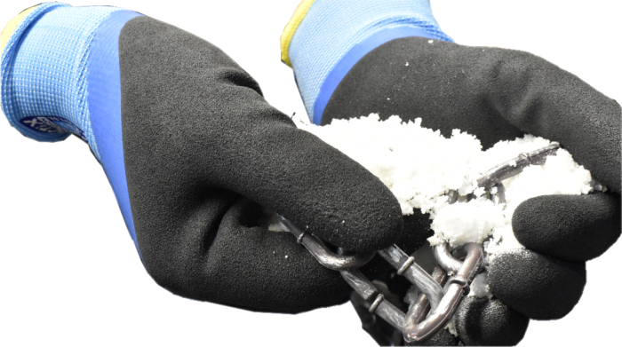 Cold condition, waterproof warm protection. Fully dipped Latex base layer with Sandy Latex 3/4 secondary coating that offers performance grip in dry, wet, and slippery conditions. Full brushed soft, warm acrylic lining.