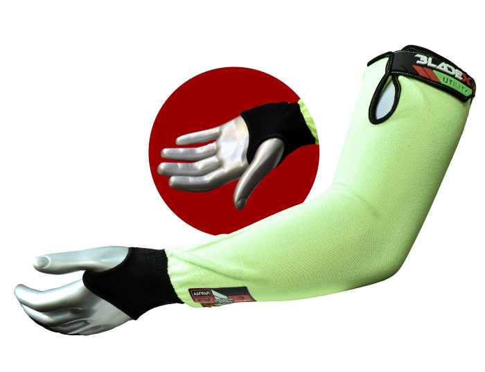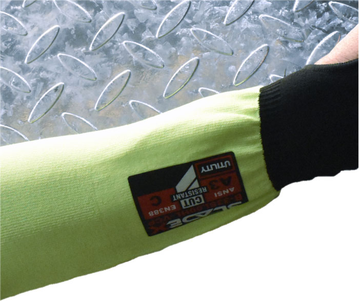 Seamless knitted, lightweight sleeve that offers excellent cut and slash protection. Velcro ‘PVC Branded’ upper adjusts to arm size with low profile (non-cut) half palm with thumb slot securing the sleeve in position.