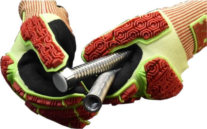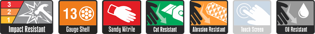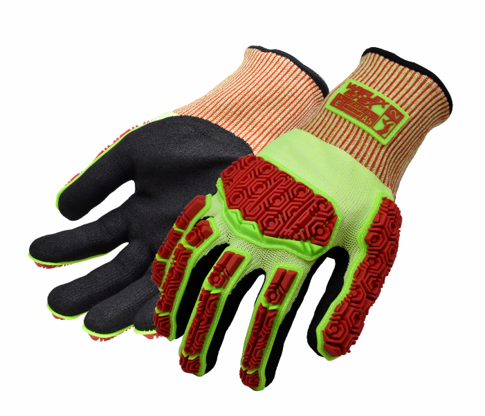 Cut ‘N’ Impact resistant, touchscreen compatible durable glove with a Sandy Nitrile palm coating that offers performance grip in wet, oily and slippery conditions. Exceptional dorsal impact protection to fingers & knuckles, yet flexible & dextrous due to patented ‘Integrated Expansion Slots’ & ‘Flex Points’