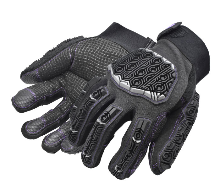 Tough Duty Anti Vibration & Impact Protection. Hi-Grip Non-Slip palm offers superior durability and grip in most conditions c/w integral full finger & palm anti-vibration padding. Excellent dorsal impact protection to knuckles / finger zones, plus support cuff with adjustable closure.