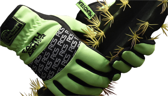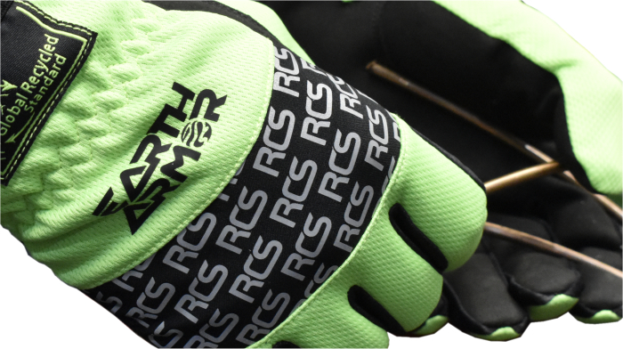 Medium Duty, RCS (Recycled Claim Standard) All-Purpose General Handling protection. High abrasion resistant palm with inset thumb provides excellent grip, flexibility, and longevity. High Visibility breathable back with ‘RCS’ retro-reflective print knuckle guard, c/w shirred back comfort fit safety cuff.