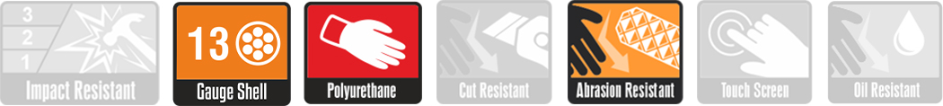 - Polyurethane finger tip coating for great abrasion resistance